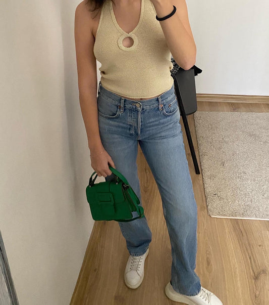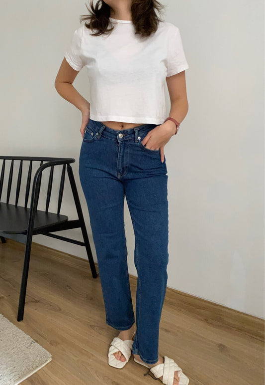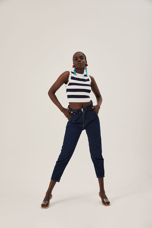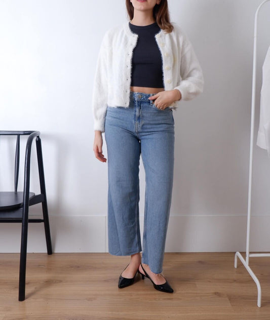 Topshop Siyah Düğmeli Kesik Paça Jean