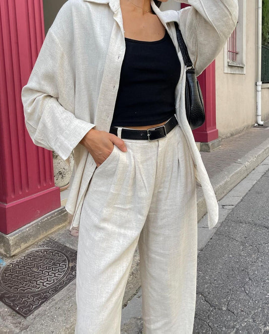 Loure Yelekli Takım- Keten Pamuk Karışımlı